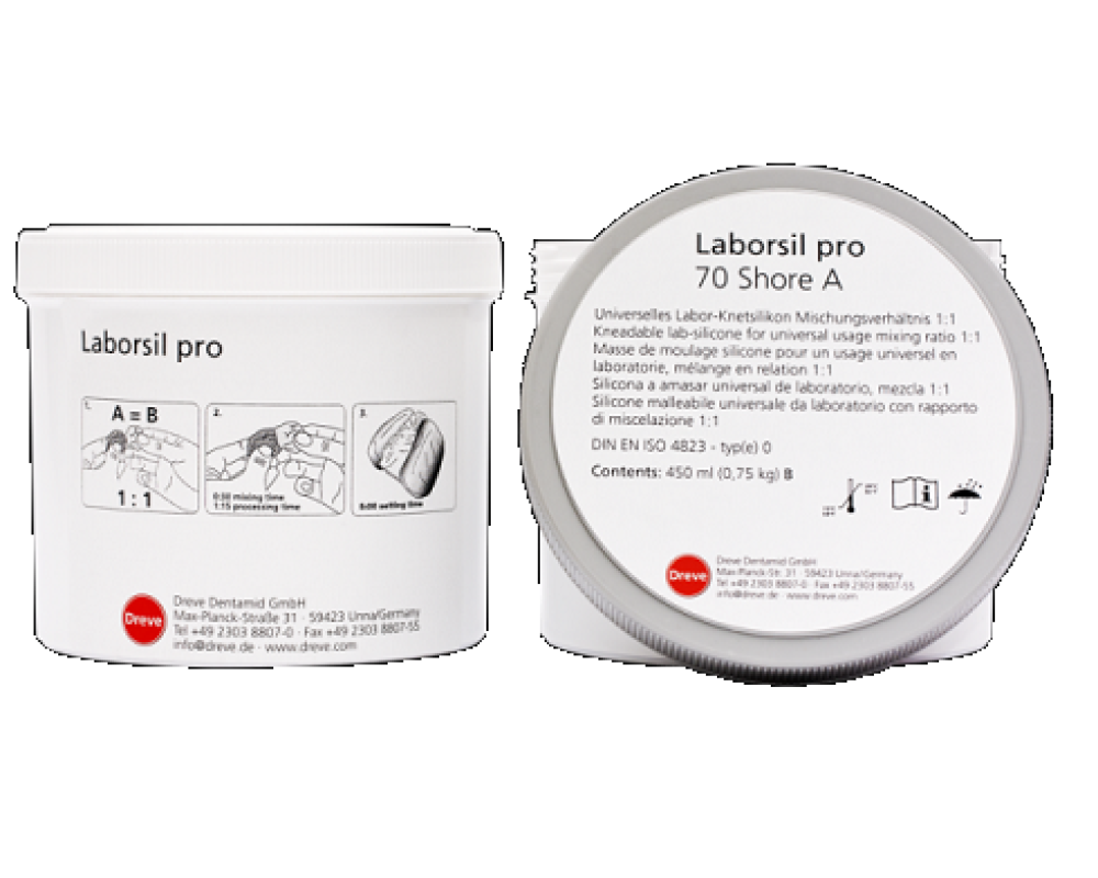 Chit de laborator, framantabil, cu soliditate finala medie, din silicon de vulcanizare adaugat. Sunt potrivite in special pentru matrice sau cheie de control. Consistenta initiala neteda, nelipicioasa, cu un raport de amestecare de 1:1. Rezultate fara contractare, cu reproducerea exacta a detaliilor.