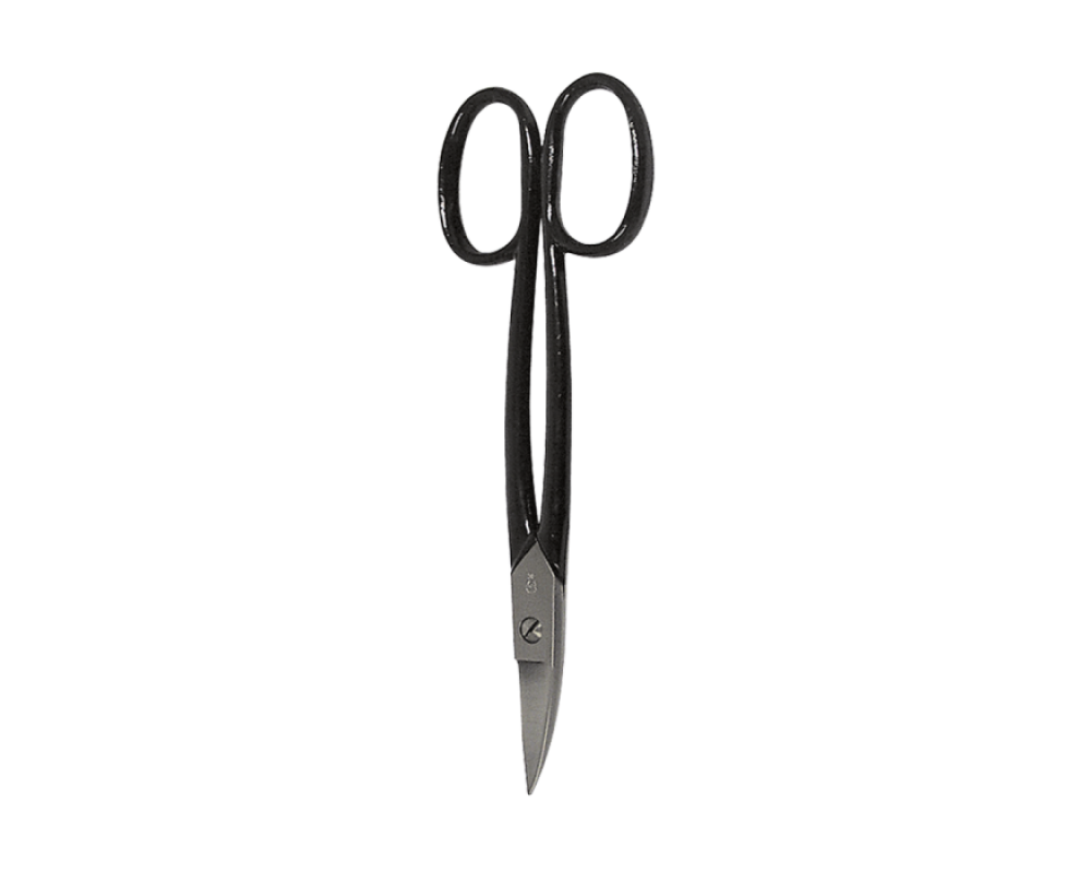 Foarfeca speciala, stabila pentru utilizarea in tehnica de termoformare, cu taiere crestata si curbata.