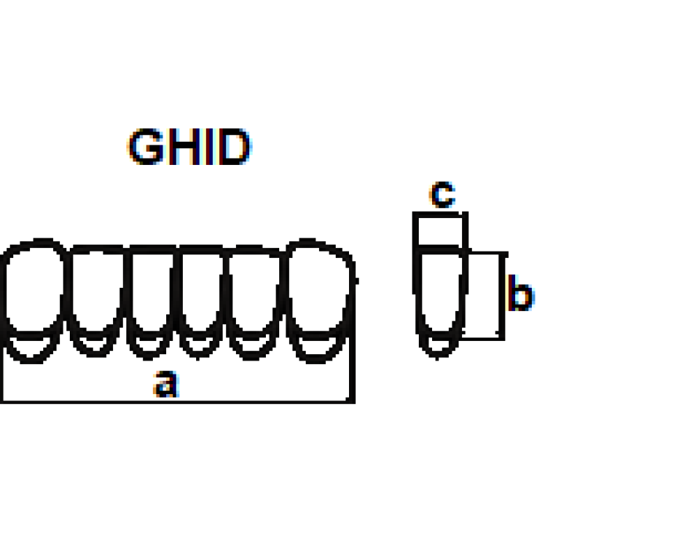 Dimensiuni proteza dentara: a - 37,7, b - 10,6, c - 5,3 (conform ghid).