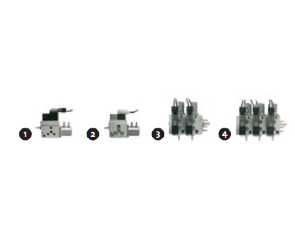 1. Supapa electrica miniatura cu 4 cai, 1 etapa fara placa de conectoare de alimentare cu aer, cod: 223255.
