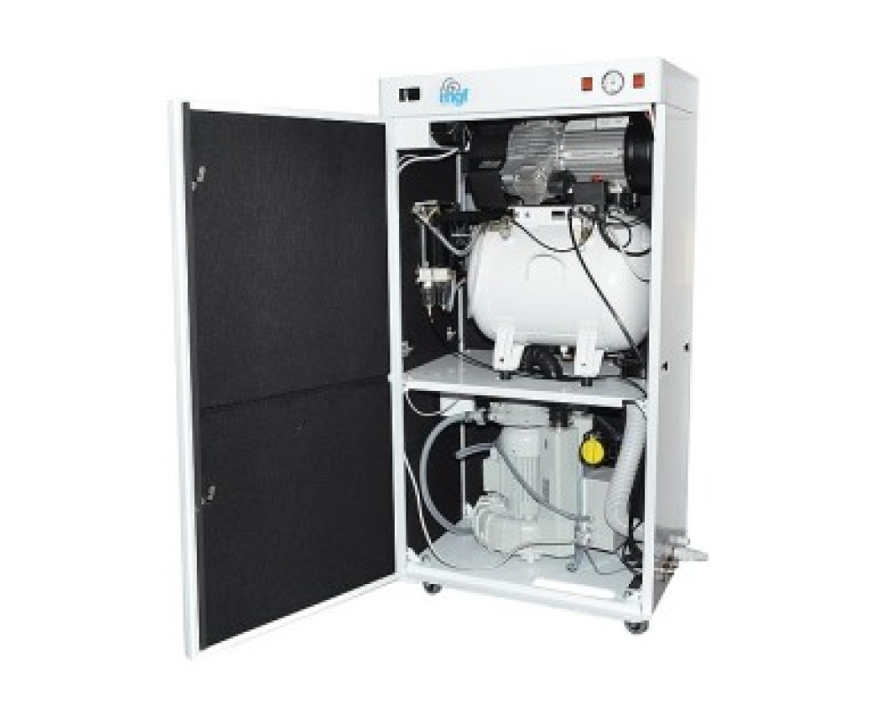 ASPIR-COMP 30/25 PRIME MC este versiunea pentru 3-4 scaune dentare, cu uscator cu membrana si aspiratie semi-umeda