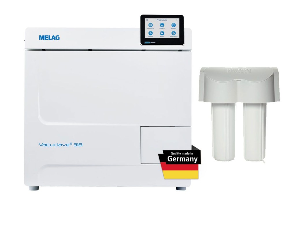 Autoclavul Vacuclave 318, capacitate 17 litri, face parte din noua gama de autoclave MELAG Prime Line: capacitate mare de incarcare, rezultate foarte bune de uscare, cu functii extinse de aprobare a loturilor pentru o trasabilitate in conformitate cu normele in vigoare.