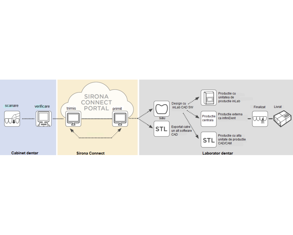 Sirona Connect este cea mai inovativa si sigura solutie pentru dentisti si tehnicieni dentari. Ofera un design economic al operatiunilor in practica si laborator pentru restaurari estetice de inalta calitate in beneficiul pacientului.