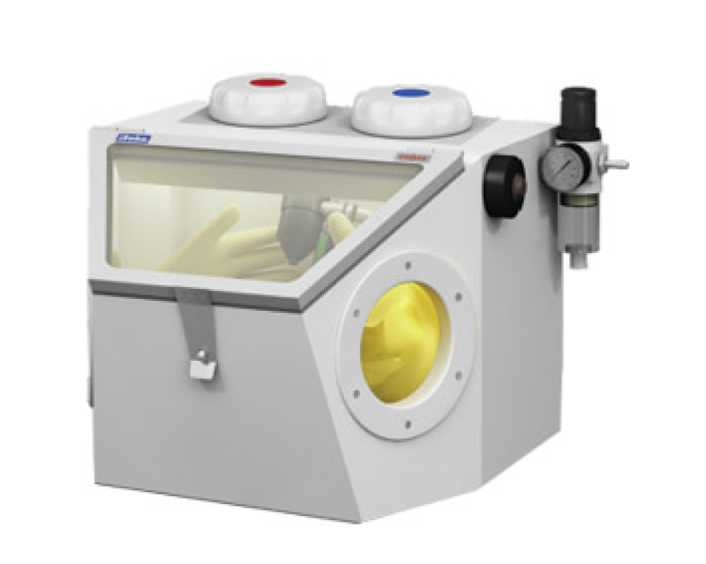 Forma ascutita a boabelor de nisip de alumina si presiunea asupra materialului curatat reprezinta un risc pentru mana utilizatorului in timpul detinerii unui detaliu sablat. Cobra este echipat cu manusi rezistente la jetul puternic de nisip care protejeaza mainile tehnicianului dentar.