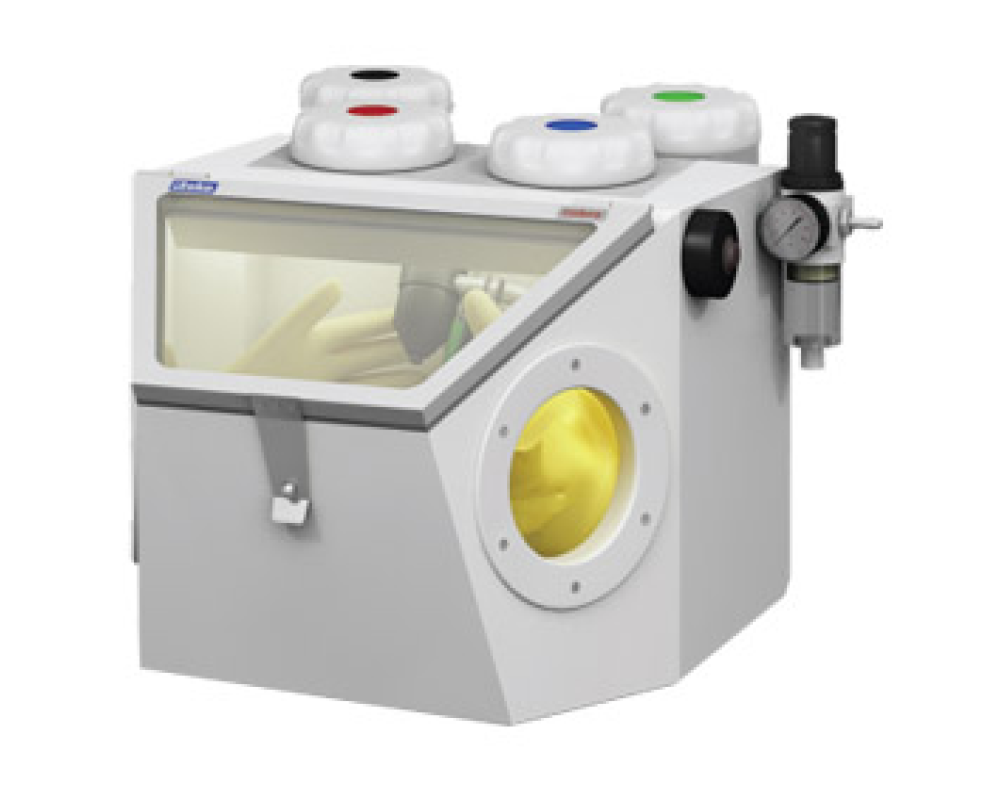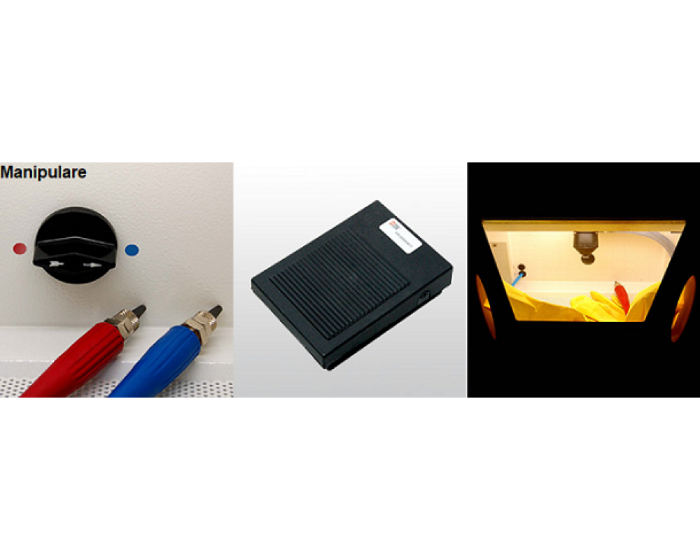 Forma ascutita a boabelor de nisip de alumina si presiunea asupra materialului curatat reprezinta un risc pentru mana utilizatorului in timpul detinerii unui detaliu sablat. Cobra este echipat cu manusi rezistente la jetul puternic de nisip care protejeaza mainile tehnicianului dentar.