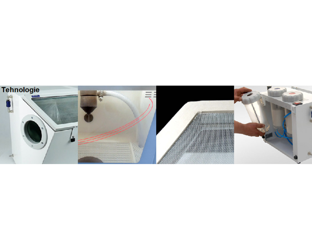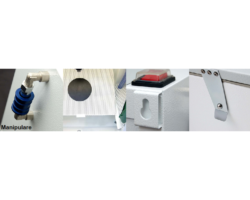 - Fiecare sablator este echipat cu accesorii suspendate pentru a va salva zona de lucru.