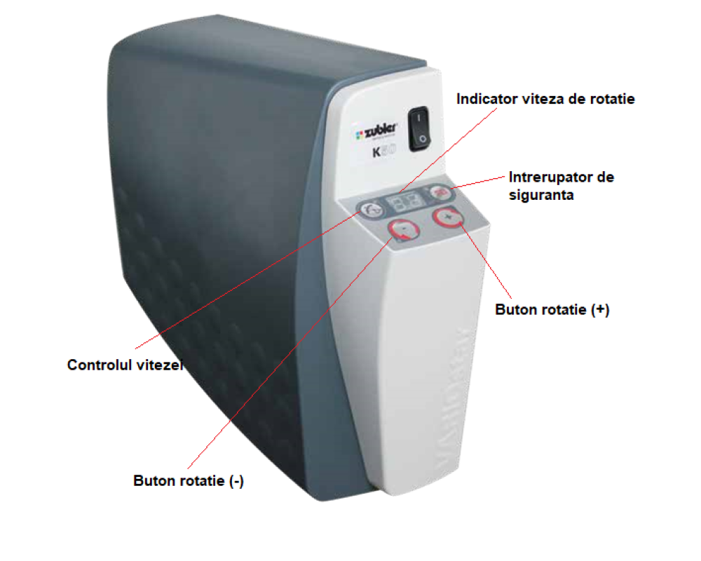 Detine buton pentru controlul vitezei si buton intrerupator de siguranta.