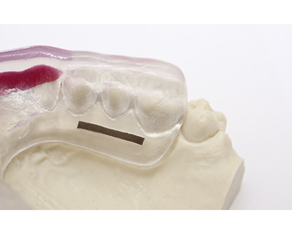 Fasie pentru inserarea in protectia bucala. Permite detectarea protectiei bucale pe imaginile X-ray, de exemplu la pacientii inconstienti.