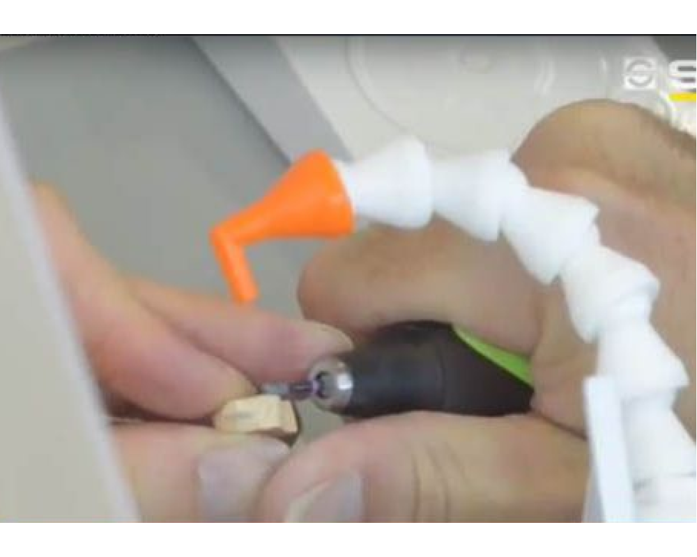Datorita atasarii simple pe gura de aspirare sau pe masa de lucru si articulatiile cu bile pozitionate flexibil, praful macinat poate fi suflat exact in directia aspirarii.