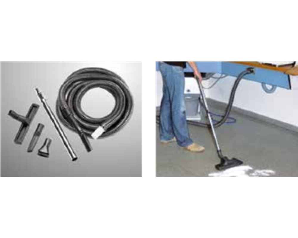 Contine: 5 metri furtun de aspirare, o duza de podea, perie de lucru si instrument pentru crapaturi.